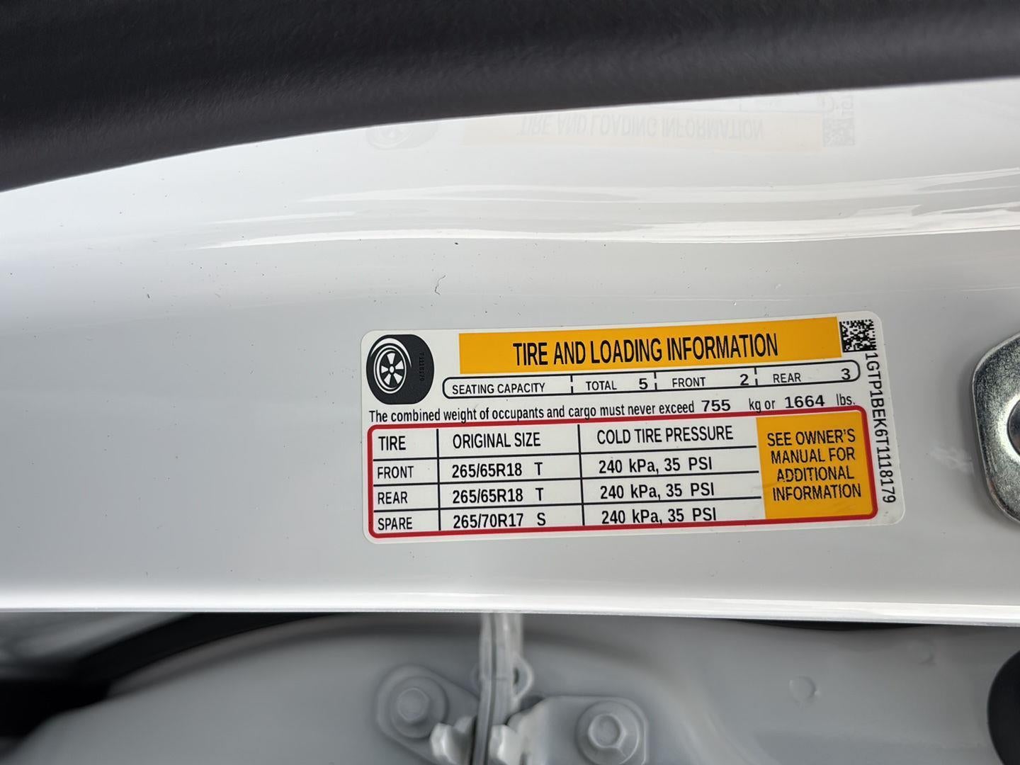 - Front Tire Size: 265/65R18SL