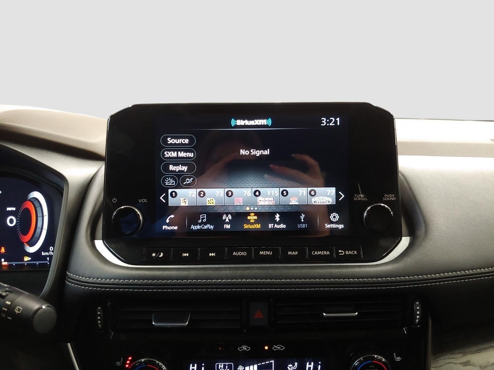 - Radio: AM/FM NissanConnect w/Navigation -inc: Nissan door to door navigation w/3D building graphics and satellite imagery featuring online POI search and online premium traffic information, SiriusXM Traffic, SiriusXM Travel Link, 9" color display w/multi-touch control, NissanConnect featuring Apple CarPlay and Android Auto, SiriusXM Satellite Radio, 2 illuminated USB connection ports (1 type-A, 1 type-C), Bluetooth® hands-free phone system, streaming audio via Bluetooth®, hands-free text messaging assistant