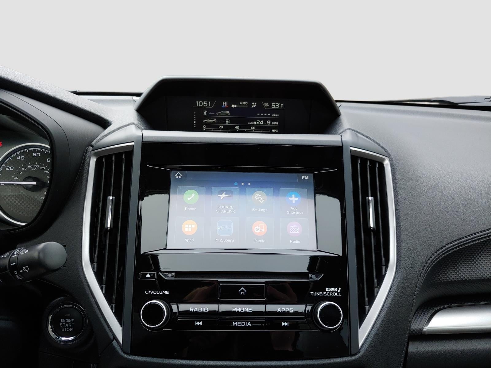 - Radio: Subaru Starlink 6.5" Multimedia Plus System -inc: AM/FM stereo HD Radio w/single-disc CD player w/MP3/WMA/CRR/RW file capability, multi-touch gesture high resolution display, voice activated controls, Bluetooth® audio streaming connectivity and hands-free phone connectivity, Bluetooth® hands-free SMS text messaging connectivity, iPod control capability, rear-vision camera display, SiriusXM All Access radio and Travel Link (4 months free trial/subscription required after), smartphone integration: AHA, Android Auto, CarPlay and Pandora, Starlink cloud applications: refer to subaru.com for app availability, steering wheel controls, 6 speakers, 3.5mm auxiliary input jack, dual USB input ports and body color roof mounted antenna